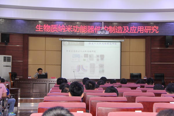报告分两部分,第一部分,孙教授针对研究生在学业道路上可能遇到的问题和困惑,分析了工学研究生应具备的能力,介绍了高水平论文发表的经验和大论文撰写应注意的关键问题。第二部分,孙教授围绕“生物质纳米功能器件的制造及应用”介绍了课题组的研究情况。首先,介绍了仿生人工肌肉的国内外研究现状。其次,介绍了课题组在组合式仿生人工肌肉、生物质纳米发电机、纤维素基仿生人工肌肉等方面的研究进展。最后,介绍了课题组目前的研究成果。