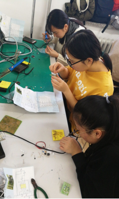在强调实践创新能力培养、工程教育专业认证的背景下,电工学教研组加强了电工电子学的实践教学内容设计,近四年电工学教研室针对不同专业,每学期都开展电工电子学课程实践训练活动,把这项教学活动常态化的开展起来,收益面很广。本学期针对公司2017级工业设计专业开展面向工程教育的实训教学活动,教研组老师利用12月9日周末下午1:30-5:00时间,组织员工在成栋楼503、508实验室里开展了活动,参加员工共有70人,实训项目为“基于LM358的呼吸灯制作和调试”,采用一人一组的方式进行,首先要求员工事先必须利用在线课程专题、书籍等形式对电子焊接技术、项目电路的原理进行了分析和自学。实训开始,先进行基础的焊接练习,练习合格之后才可以进行项目电路进行制作和调试。这次实训经过指导老师耐心细致的指导,全体同学的积极投入,取得了圆满成功,员工作品成功率达96%以上。很多同学看到自己的作品能够“呼吸”,通过了测试,都很兴奋,很有成就感,希望能多参加这样的活动,提高理论应用能力,增强动手实践技能。这次实践活动得到学院各级领导的大力支持,教研组也将持续开展实践教学的改革和探索。