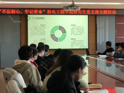 “习近平总书记强调,中国共产党人的初心和使命,就是为中国人民谋幸福,为中华民族谋复兴。我们要不忘初心,做一个不忘本源的坚持者,只有不忘初心、牢记使命、永远奋斗,才能让中国共产党永远年轻,而作为即将成为国家栋梁的研究生,我们首先要明晰自己的初心,牢记自己的使命,不负中国共产党的初心和使命”。活动开始前,宁礼佳简要介绍了此次活动的背景和意义。希望大家充分利用好此次主题教育,面对现在,展望未来,明确目标,找到差距。