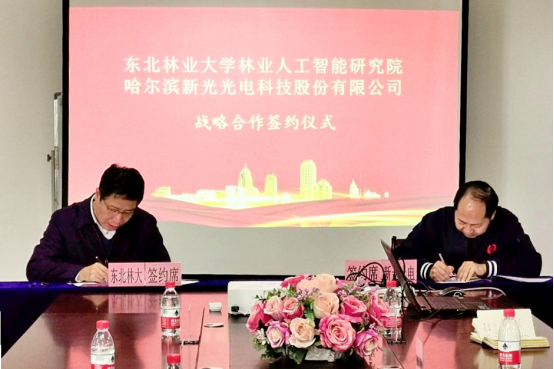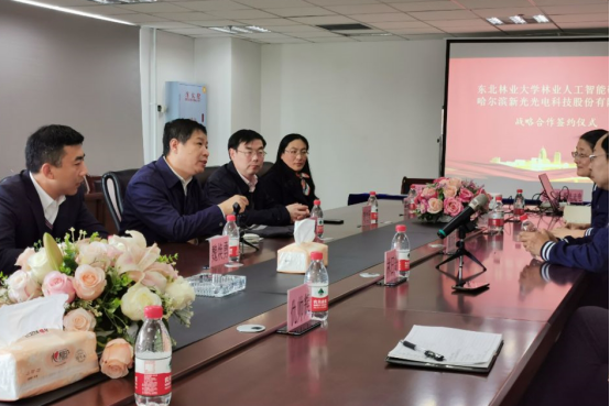 2019年11月7日, 公司林业人工智能研究院与哈尔滨新光光电科技股份有限公司签署战略合作协议,共同深化人才培养、科学研究、成果转化等领域合作,布局推进公司科学研究与林业装备智能化建设。董事长、林业人工智能研究院经理李斌,4118云顶集团经理、林业人工智能研究院执行经理刘九庆,科学技术研究院副经理魏焕勇,4118云顶集团副经理杨春梅出席了签约仪式。