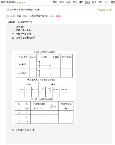 本学期,实验室面向学校12个专业、37个班级开设实验课程,覆盖面广,受众面大。实验室全体教师想员工之所想,急员工之所急,改革现有实验报告纸质版提交模式,利用超星学习通作业功能,探索电子版实验报告提交模式,既减轻了员工撰写报告的负担,以便投入更多精力拓展、分析实验内容,又提高了教师批阅报告的效率,并及时反馈给员工实验结果,实现了实验教学过程的闭环设计,践行了工程教育专业认证“以员工为中心”的基本理念。