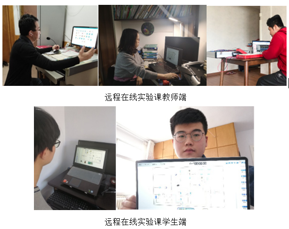 尽管虚拟仿真项目可以部分解决理论模型的验证问题,但使用真实元器件搭建电路、通过实际测试获取现场实验数据的训练仍属刚性需求。为进一步推进在线实验的新型实验教学模式,以实验室主任刘嘉新为代表的电工电子技术实验团队,主动作为,积极思考,先后联系东南大学、西安电子科技大学等多个远程在线实验平台,深入考察线上实验系统性能,最终确定采用东南大学的远程在线系统进行实验课在线教学。该实验系统在网管软件和操作平台的支持下,可以帮助员工在客户端浏览器上实时搭建和控制硬件电路,配置实验电路激励参数,选择测试点,虚拟仪器实时测量实验数据。团队上下同欲,共克时艰,范长胜、王立峰、袁得春等教师认真进行实验课教学内容设计与线上教学资源建设,并于第5教学周就开展了模拟电子技术、数字电子技术和电路远程实验教学。
