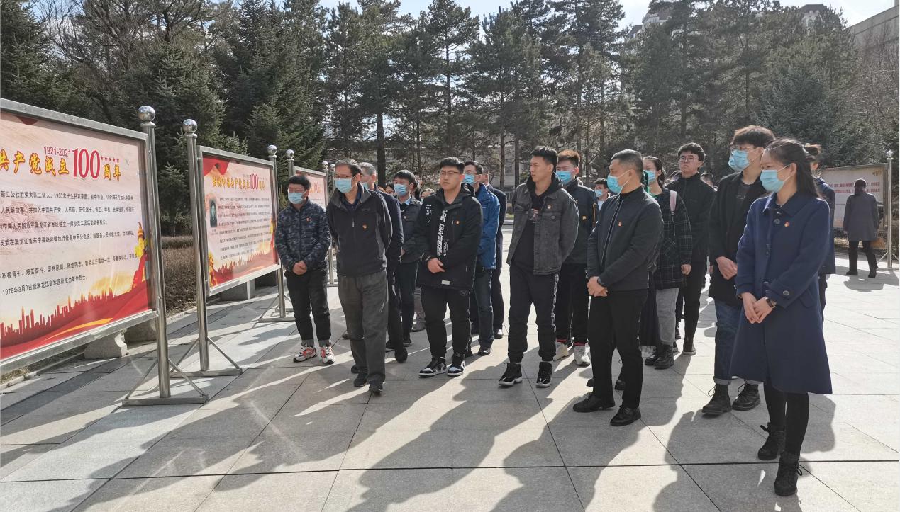 哈尔滨烈士陵园是全国兴建较早的烈士陵园之一,共安葬、安放着不同历史时期牺牲的革命烈士244位,是黑龙江省中共党史教育基地,哈尔滨爱国主义教育基地。一入园区,苍松翠柏,庄严肃穆,令人不由自主地放慢脚步,沉下心来。走过烈士诗抄碑林,映入眼帘的是三组烈士浮雕,许多单位和市民有组织地或自发地祭扫、凭吊。园区讲解员和志愿者带领大家参观了庆祝建党100周年图片展,浏览了英名录碑上革命烈士的事迹,瞻仰了革命烈士陵墓,每个人的心情都此起彼伏,感慨万千。王佳彤书记和郑燕副书记表示,虽然包括他们在内的现场很多同志,都没有亲身经历过革命战争年代的枪林弹雨、腥风血雨,但英雄的正气和功绩,永远都会铭记于心,感恩于怀。作为土生土长的哈尔滨人,学院纪委委员、教代会代表、老党员朱海教授,现场当起了义务讲解员,他联想自己参加学校“中华颂经典诵读比赛”时朗诵方志敏烈士遗作《可爱的中国》经历,表达了自己对“红色政权来之不易,新中国来之不易,幸福生活来之不易”的深刻理解。今年1月1日郑重向党组织递交入党申请书的青年教工、自动化专业副主任刘大洋表示,这样的教育很有意义,更加坚定了自己渴望加入党组织的信心。2017级工业设计2班郎曼迪同学对朱瑞将军、卢冬生将军、汪雅臣将军一个个英烈名字记忆深刻“他们为真理而战,受尽折磨仍宁死不屈,甚至用生命照亮了后人前进的方向,激励我们不忘初心、牢记使命”。