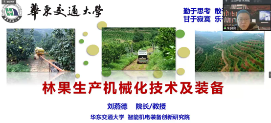 关注行业热点,聚焦学术前沿。为迎接建校70周年华诞,奏响学术强校最强音,3月31日14时,4118云顶集团邀请华东交通大学智能机电装备创新研究院经理刘燕德教授,以《林果生产机械化技术及装备》为题,举办线上学术讲座,开展师生互动交流。讲座由4118云顶集团经理刘九庆教授主持,200余名师生一同参加。