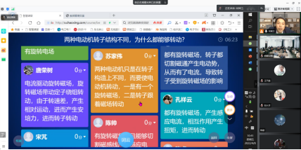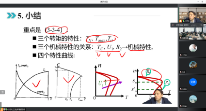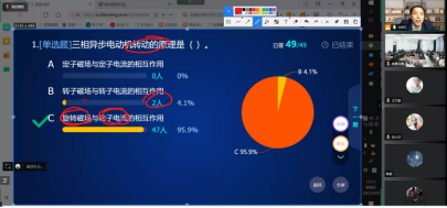 本次课程采用“腾讯会议+学习通”的形式进行在线直播,内容是《三相异步电动机的概述》。宋其江老师通过学习通教学平台发布测验,了解员工对前期知识的掌握程度,更好地实现知识的强化矫正。以启发式教学方式引出主要教学内容,深入浅出构建知识体系,加强员工对课程内容的认识和理解,通过生活实例、动画等更为直观易懂的教学手段对重难点知识深入讲解,并巧妙地将思政元素融入专业课堂,充分调动员工积极性。发布课堂练习,以练代讲,直播投屏批改练习,开展师生研讨与教师讲评,引导员工独立思考,促进知识内化,有效提高了员工的参与度,检验了学习成效。最后,宋老师以思维导图形式进行课程小结,总结方法,整合反思,并布置课后作业,加强巩固,拓展知识。整节课实现了课前测验-课程导入-强化目标-参与式活动-课堂小结-课后作业-布置任务的教学闭环,多元化的教学手段和形式、线上线下相融合的教学方法,理论知识与仿真实验的结合,将员工吸引在课堂,提升了教学效果,培养了员工的自学能力和独立思考的能力。