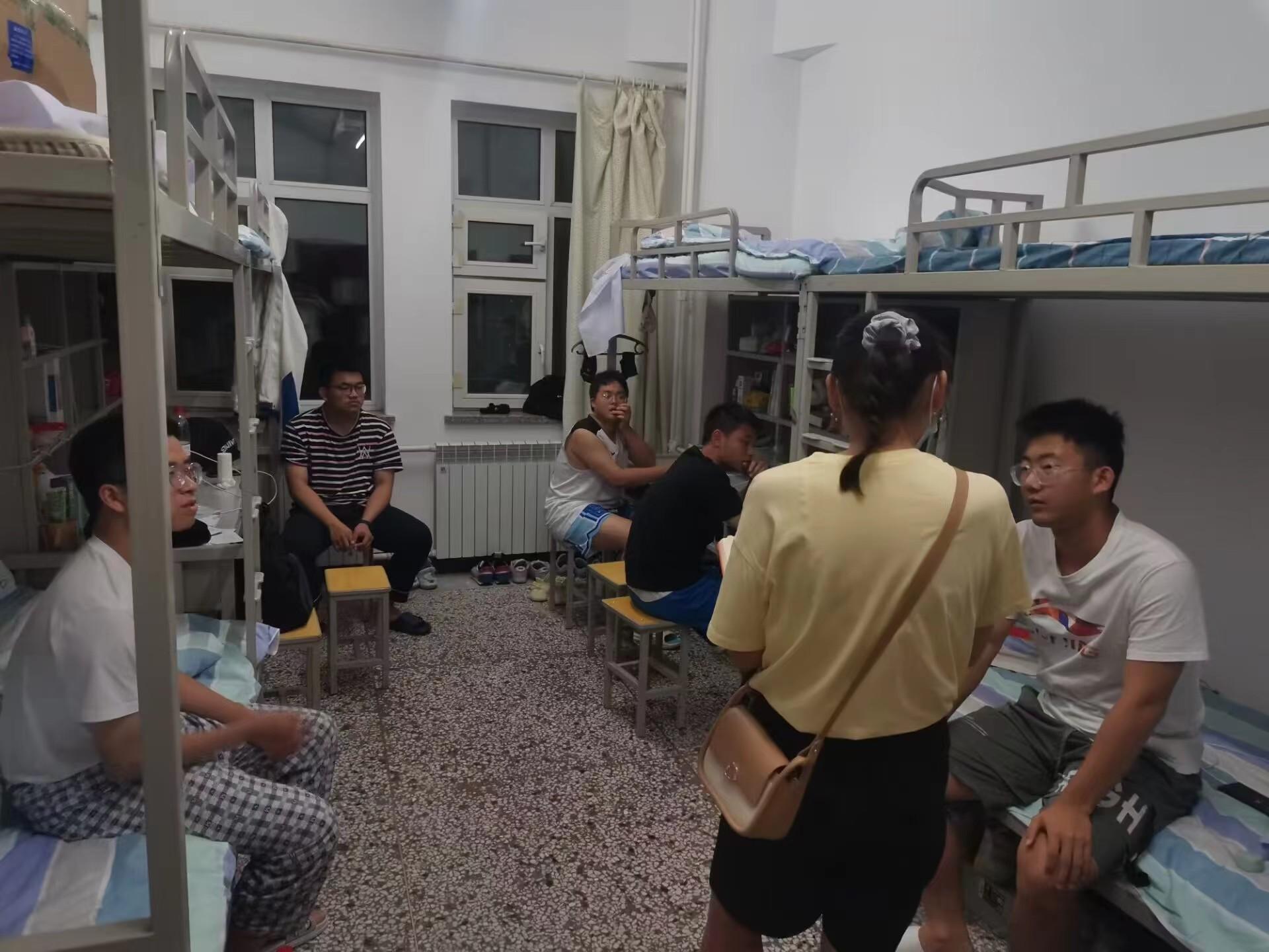 新生辅导员在走寝过程中,向同学们转达了来自父母的关心和鼓励,很多同学表示刚开学来会很想家,但还好有学院领导和老师的关心和帮助,还有亲切的学长学姐组织丰富的体育活动,让他们感受到了温暖。