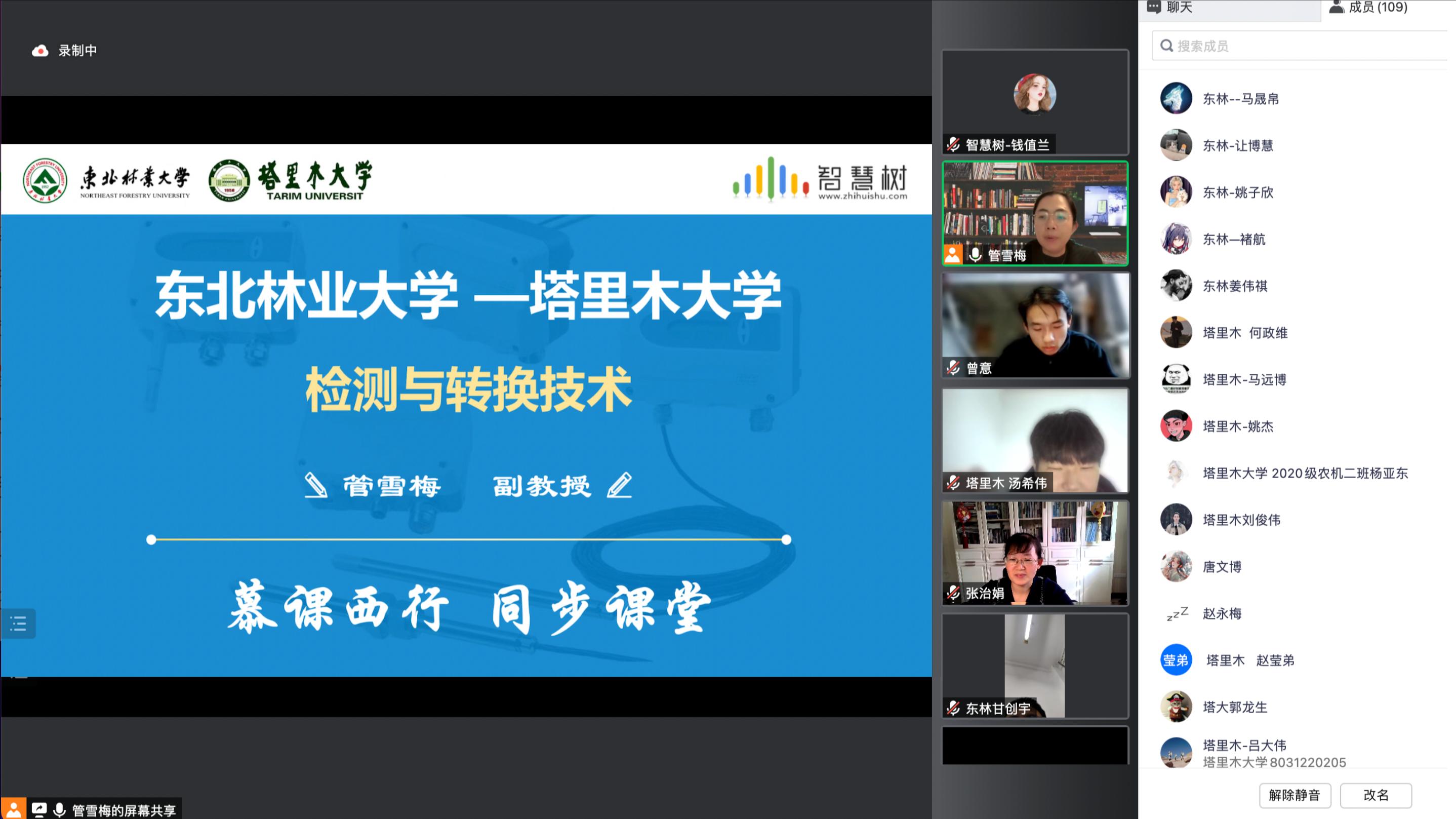 今年4月,公司课程首次通过“慕课西行”计划走进塔里木大学。本学期,公司精准对接塔里木大学需求,确定了4118云顶集团的《检测与转换技术》为第二批“慕课西行”课程。本课程由4118云顶集团管雪梅副教授主讲,管老师从林业特色入手,讲解了检测系统整个设计过程,包括系统需求分析、系统整体设计、传感器的选择论证、系统硬软件设计及测试方案的制定等内容。授课过程中,管老师融合腾讯会议和智慧树平台,采用智慧树“头脑风暴”互动工具,两校员工使用文字图片与语音实时,互动交流,积极应答。课后两校员工纷纷表示课堂内容精彩丰富,管老师理论基础扎实,授课形式有趣活泼,大家都收获满满。