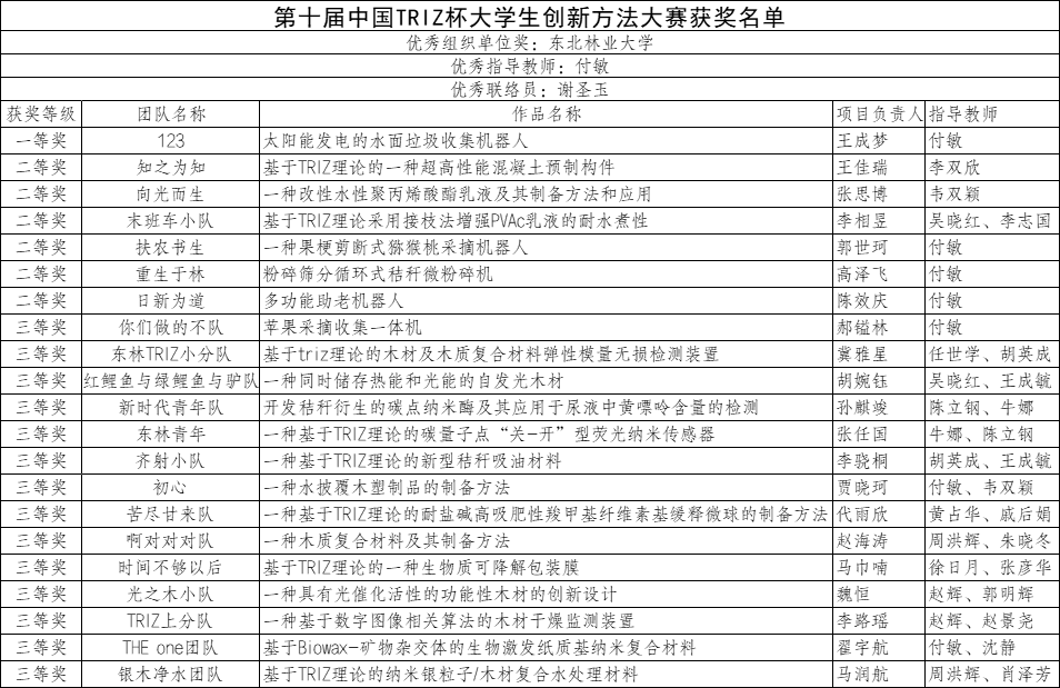 日前,由中国科学技术协会、科学技术部联合主办的第十届中国TRIZ杯老员工创新方法大赛决赛在哈尔滨工程大学落下帷幕,公司21件作品从296所高校的2145项参赛作品中脱颖而出,获得一等奖1项、二等奖6项、三等奖14项,学校获得优秀组织奖。